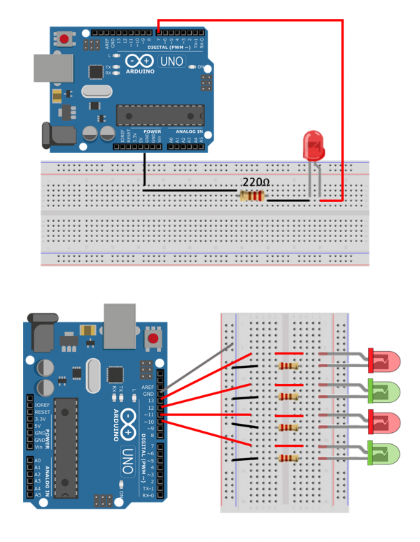 아두이노 LED 동작 작성자 임베디드코리아 작성일23-01-30 15:04 조회1,691회 댓글0건 첨부파일 LED.ino (184byte) 7회 다운로드 DATE : 2025-05-15 16:04:20 이전글 다음글 목록 동영상 : https://youtu.be/ldQG9p2lh38 < LED 1개 깜박이기 > --------------------------------------------- int led1pin=7; void setup() { pinMode(led1pin, OUTPUT); } void loop() { digitalWrite(led1pin, HIGH); delay(500); digitalWrite(led1pin,LOW); delay(500); } ---------------------------------------------------- < LED 4개 동작 > ------------------------------------------------------- void setup() { pinMode(13, OUTPUT); pinMode(12, OUTPUT); pinMode(11, OUTPUT); pinMode(10, OUTPUT); } void loop() { digitalWrite(13, HIGH); delay(1000); digitalWrite(13, LOW); digitalWrite(12, HIGH); delay(1000); digitalWrite(12, LOW); digitalWrite(11, HIGH); delay(1000); digitalWrite(11, LOW); digitalWrite(10, HIGH); delay(1000); digitalWrite(10, LOW); delay(1000); } 이전글 다음글 목록